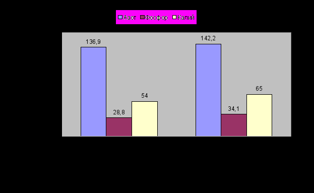 Под люцерной трех лет содержания азота в пожнивно-корневых остатках повышалось до 142,2 кг/га, фосфора до 34,1 кг/га, калия до 65,0 кг/га (рисунок 6).