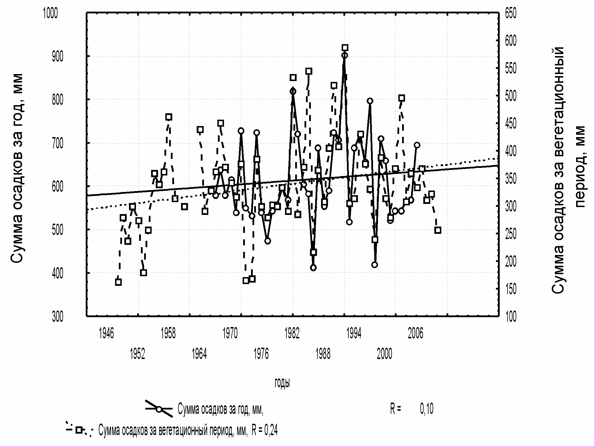 Рисунок 5 - Изменение количества осадков, 1946-2008 гг.