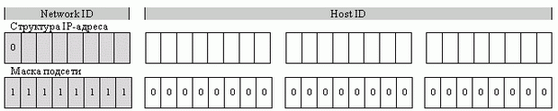 Пример структуры IP-адреса с маской подсети для сетей класса А: