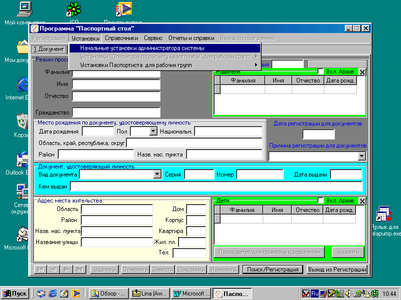 Администратор программы должен ввести в систему список сотрудников, которые будут пользоваться программой, присвоив каждому свою рабочую группу и зачислив каждого в свою категорию доступа (администратор, паспортист, оператор).