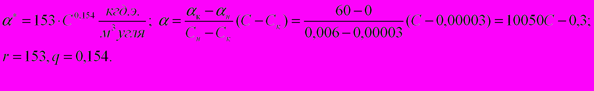 Положим Сн=0,006 кг/м3, к=60кг/м3угля.