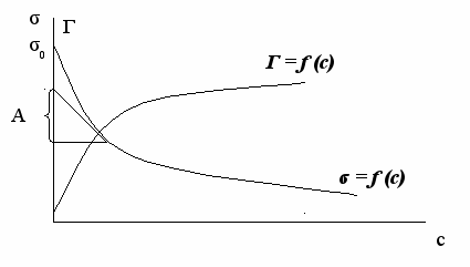 . (3)По сравнению с (3) влияют величины удельной адсорбции для 5-7 растворов разных концентраций, беря соответствующие значения А из графика в масштабе поверхностного натяжения (Дж/м2); R = 8,315·103 Дж/кмоль·град; Т – абсолютная температура.