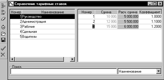 Разряд по тарифной сетке определяет категории оплаты и суммы оплаты труда сотрудников. При изменении тарифных ставок программа позволяет пересчитать все зависимые значения.