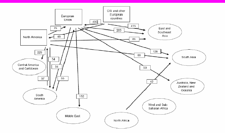 (4 120 000 долл. США – 12 360 000 долл. США), которые были предметом экспорта. На международном рынке цена на ртуть колебалась от 5 до 15 долл. США/кг ртути. В 2004 году экспортные потоки из 25 стран ЕС были гораздо меньше (824 т), чем раньше (в 2002 году – 1 658 т, в 2003 году – 1 100 т), вследствие установления одним из основных экспортеров ртути новых требований к идентификации конечных пользователей. Это требование было введено во избежание использования экспортируемой ртути в секторе КМДЗ развивающихся стран. Структура мировой торговли в 2004 году представлена ниже на диаграмме 2 (EC DG-ENV 2006).