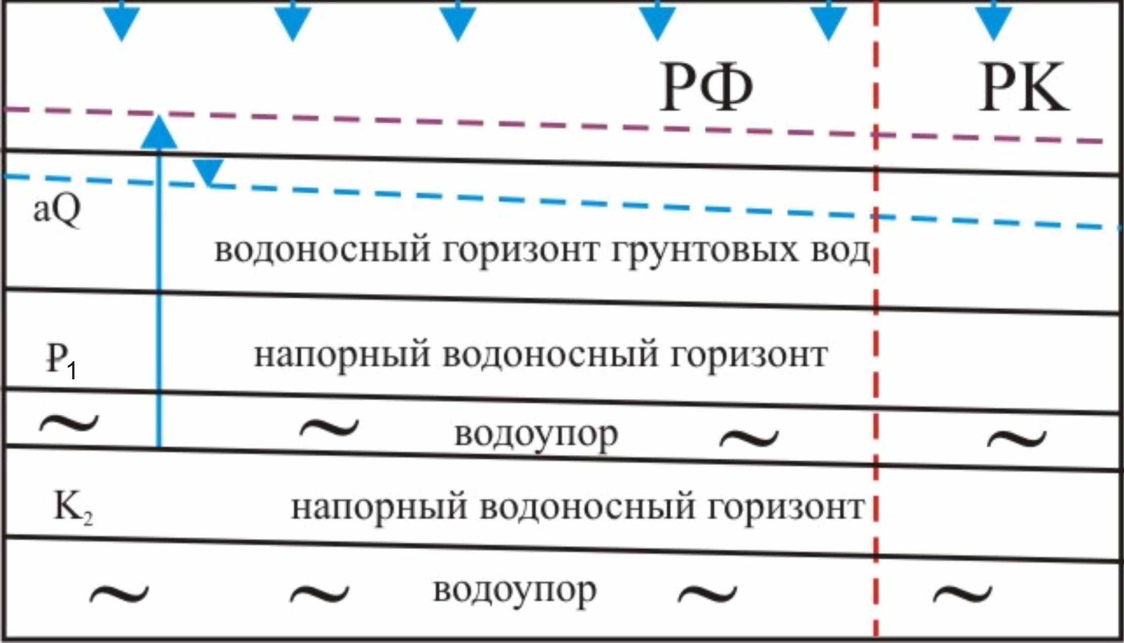 Рисунок 1. Концептуальный эскиз Южно-Предуральского подземного водоносного горизонта (предоставлен Казахстаном)