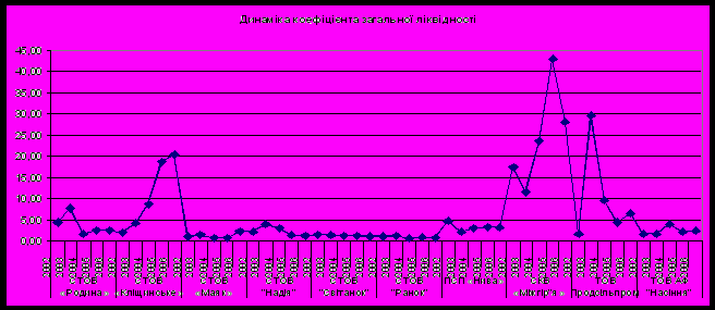 Рис. 2.2. Динаміка коефіцієнта загальної ліквідності досліджуваних сільськогосподарських підприємств Черкаської області