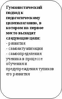 –гуманистический подход к педагогическому целеполаганию, в котором на первое место выходят цели развития, самоактуализации и самоопределения ученика в процессе обучения и предупреждение тупиков его развития;