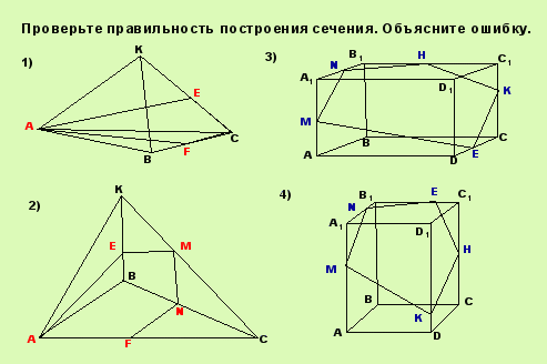 Задание № 5 (устно). Проверьте правильность построения сечения, укажите ошибку.
