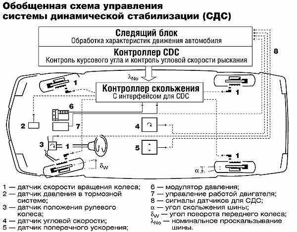 На основании сигналов, поступающих от датчиков, электронная система курсовой устойчивости (другое наименование - система динамической стабилизации - СДС) активирует соответствующие системы безопасности и управляет их работой.