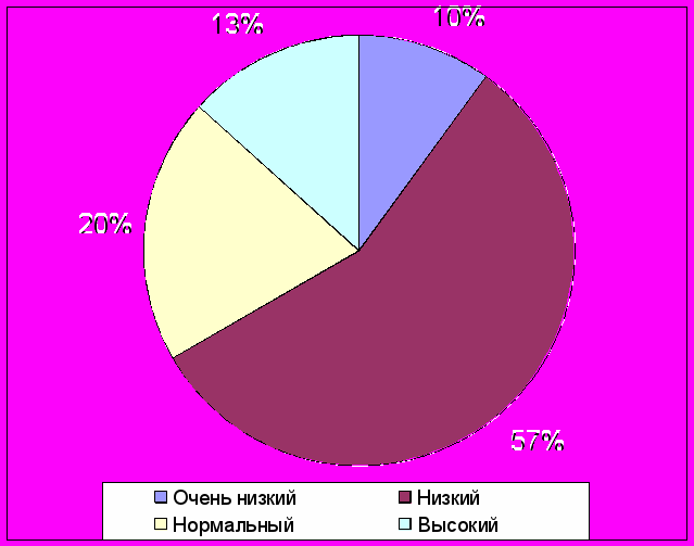 Рис. 4. Распределение испытуемых в процентах по уровню эмпатийности по методике Батаршева А.А. «Тест эмпатийных тенденций»