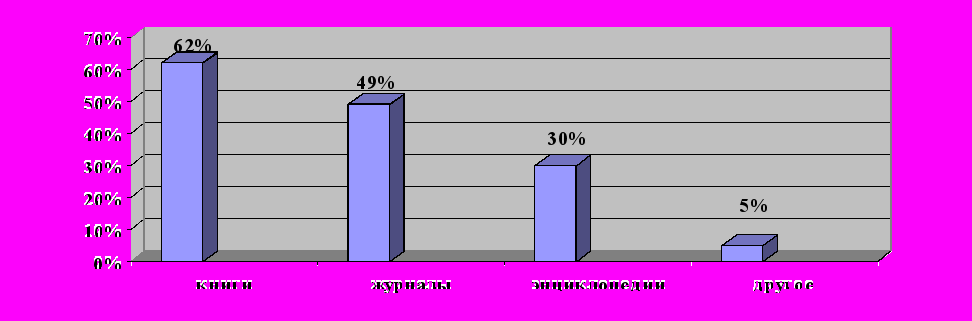 Помимо учебной литературы младшие школьники чаще всего читают книги, на втором месте по частоте обращения - журналы, на третьем – энциклопедии, и небольшое количество выборов других видов текстов на разных носителях (газеты, комиксы, реклама, аудиокниги, тексты в Интернете).