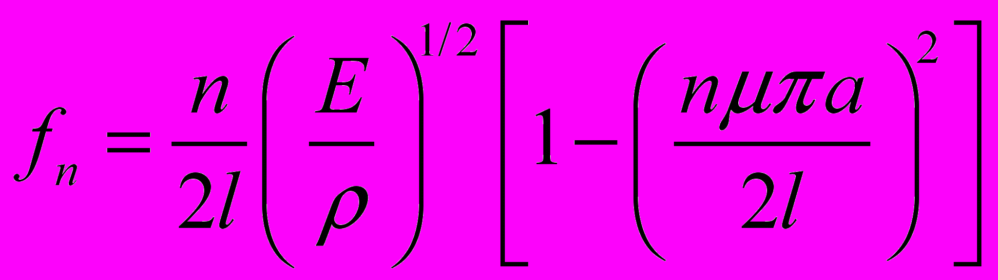 Если радиус стержня больше десятой части длины волны, в уравнении для перемещения необходимо учитывать радиальные изменения. Тогда выражение для резонансной частоты принимает вид: