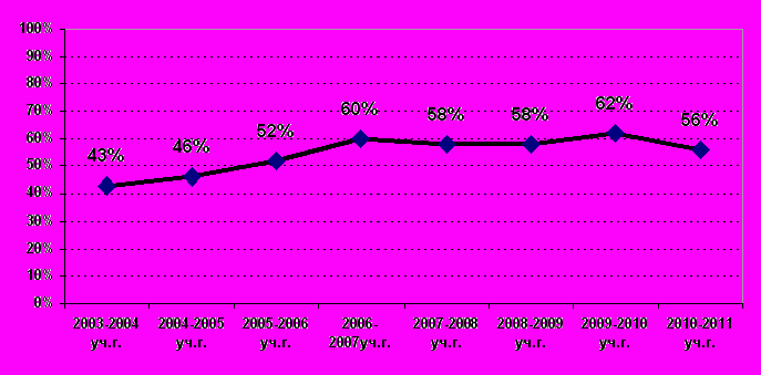 | 2010-2011 уч.г. | 63 % | 47 % | 58 % |