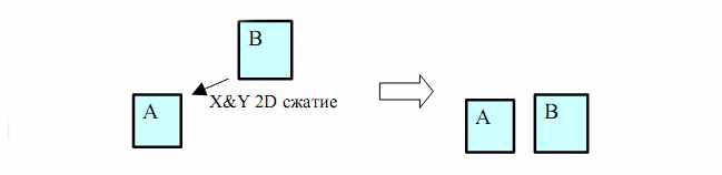 При 2D сжатии элементы топологии могут двигаться одновременно в обоих X и Y направлениях. Следовательно, обе координаты объекта изменяются одновременно (Рис. 4).