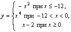 ![]() | 1. Ввести x. 2. Если x–12, то y:=–x2 3. Если x<0, то y:=x4 4. y := x–2 5. Вывести y 6. Конец |