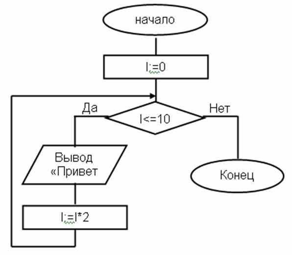 8. Сколько раз выполняется вывод текста «Привет» в алгоритме? (см. рис.)