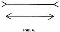 Если восприятие толковать как сумму отдельных перцепций, то как объяснить, что два сегмента, геометрически совершенно равные, воспринимаются один короче другого? (См. рис. 4.)