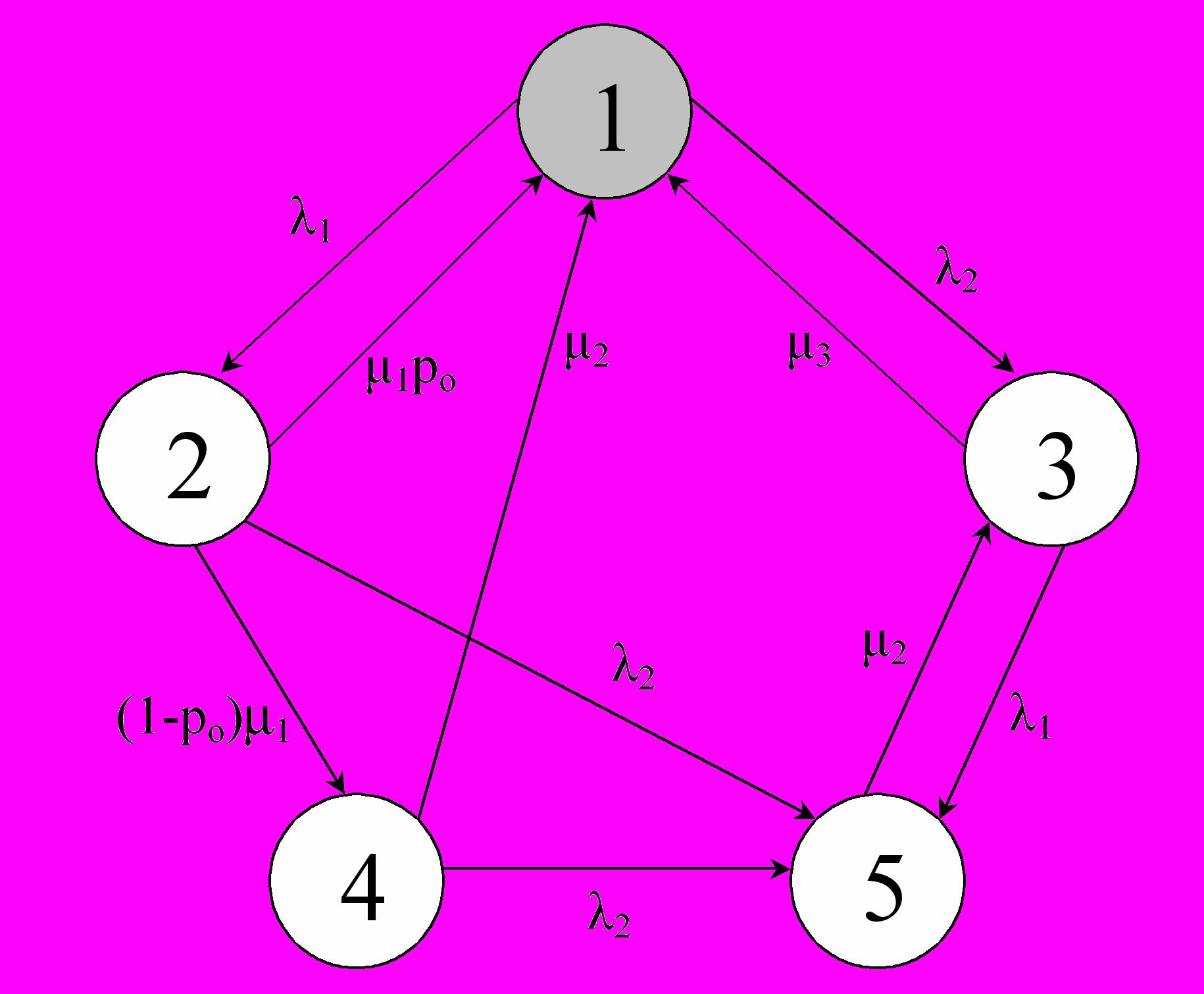 ,где pi - финальные вероятности, которые рассчитываются алгоритмически из системы линейных алгебраических уравнения (СЛАУ) Колмогорова-Чэпмена, составленной на основе графа состояний.