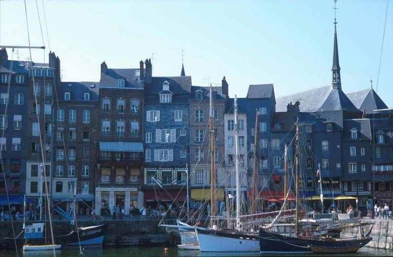Онфлёр – город-гавань в устье Сены и Ла Манша. В средневековье Онфлёр был важной стратегической точкой Столетней Войны, позднее колыбелю первооткрывателей, купцов и рыбаков. С XIX века – это город художников, до сих пор они с мольбертами рисуют у старой гавани, а на улицах изобилуют картинные галереи. Пешеходная экскурсия по городу вокруг старой гавани и посещение церкви Святой Катерины – самой большой деревянной церкви Франции с отдельной колокольней XV века. Вид на мост Нормандии.