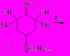 Если лимитирующей стадией является первая необратимая стадия (7), то реакция может протекает в квазистационарном режиме, и при этом эффективная константа скорости kэфф может быть определена из значений текущей концентрации 4-нитрозоанилина, используя уравнение: