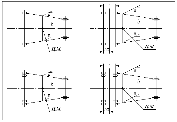 Рисунок 4.1. Схемы определения величины приведенной колеи "b"