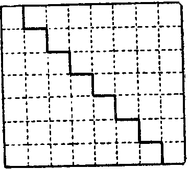 умма предыдущих относится к сумме последующих, как каждое предыдущее к каждому последующему, «сумма» ординат эллипса, т. е. его площадь, относится к «сумме» ординат круга, т. е. к его площади, как п:т, или как его малая ось к большой. Вот почему, когда Архимед в предисловии к «Квадратуре параболы» (см. стр. 109) говорит, что площадь эллипса (эллиптического сегмента) прежде находили, «исходя из вряд ли допустимых предпосылок», то можно быть уверенным, что он имеет в виду именно это решение, при котором эллипс рассматривается как совокупность «всех его ординат». Можно полагать, что теми же методами решались в это время и задачи суммирования некоторых сходящихся рядов. Мы знаем теперь, что уже древние вавилоняне умели суммировать не только арифметическую и геометрическую прогрессии, но и ряд а2+(2а)2 + (3а)2 + ... Как я доказываю в другом месте, суммирование рядов 1+ 2 + 3 + ... и 12 + 22 + 32 + ... производилось в это время наглядным геометрическим путем (фиг. 2 и табл. 3). Если принять за 1 каждый из квадратов, изображенных на фиг. 2, то книзу от ломаной линии находятся: в верхнем ряду 1 квадрат, во втором 2, в третьем 3 и т. д., т. е. перед нами сумма 1+ 2 + 3... + n. Над ломаной линией находится как раз такой же величины фигура, а обе они вместе представляют собою прямоугольник со сторонами п и п + 1. Площадь всего прямоугольника п(п+1), а каждой из сту-{18}пенчатых фигур n(n+1)/2. Такова сумма ряда 1 + 2 + 3...+ n. Точно так же на прилагаемой таблице изображена ступенчатая пирамида. Если принять за 1 каждый куб, из которых она составлена, то в верхнем слое 1 такой куб, во втором слое, имеющем в два раза бóльшую ширину и длину, 22 таких куба, в третьем слое, имеющем в три раза большую ширину и длину, 33 таких куба, а всего 12 + 22 + 32 ... + п. Если сложить три такие ступенчатые пирамиды способом, изображенным на табл. 3b и 3с, то получим: а) параллелепипед со сторонами п, п и п + 1, к которому сверху добавлено еще б) ступенчатое тело, имеющее высотой 1, а основанием ступенчатую фигуру, изображенную на фиг. 2. Площадь ее, как мы видим, равна n(n+1)/2. Итак, объем всего этого тела