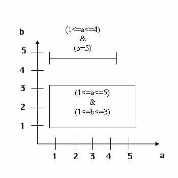 Это иллюстрируется следующим примером, показывающим, что в каких бы режимах не требовала транзакция 1 захвата условия (1<=а<=4) & (b=5), а транзакция 2 условия (1<=а<=5) & (1<=b<=3), эти захваты всегда совместимы. Пример: (n = 2). Заметим, что предикатные захваты простых условий описываются таблицами, немногим отличающимися от таблиц традиционных синхронизаторов.