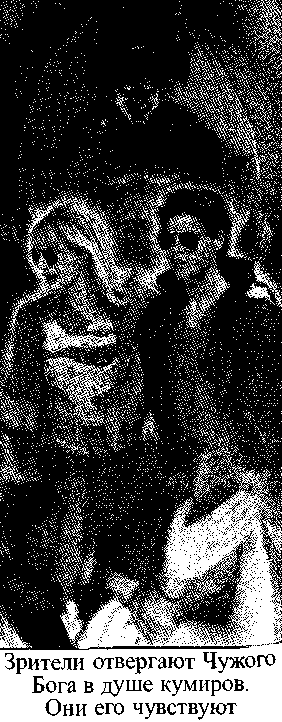 И им, шоумэнам (или шоумэншам) невдомек, что вместе с рукоплесканиями зрителей в них... черт побери... уже вселился Чужой Бог, проклятый Чужой Бог, которого чувствуют и отторгают зрители. Не по душе получается, когда Чужим Богом пахнет!
