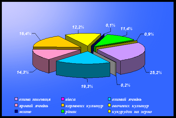 ячменю – 4696га; ріпаку –3758га; жита –5га; озимих на зелений корм – 445 га.