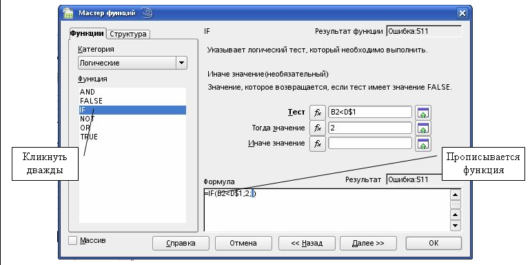 В графе Иначе значение: с левой стороны окна кликнем дважды на IF. В графе Тест прописываем: дважды кликнем на функцию AND (с левой стороны окна). Теперь в графе Логическое выражение 1 пропишем B2>=D$2 и в графе Логическое выражение 2 B2