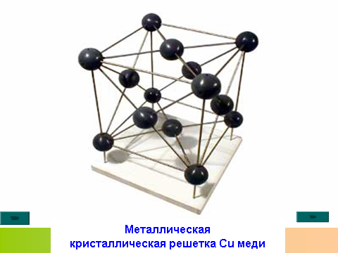 лайд 12.Металлическая решетка соответствует веществам с металлической связью, в узлах такой решетки находятся атомы, ионы - в которые легко превращаются атомы металлов, отдавая свои внешние электроны в общее пользование.
