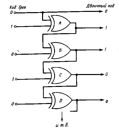 Рис. 8.9. Преобразователь кода Грея в двоичный код.