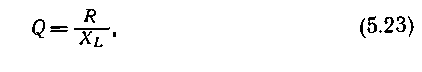 (5.22)где R — эквивалентное последовательное активное сопротивление; при этом учитываются как активное сопротивление катушки индуктивности (предполагается, что активное сопротивление конденсатора пренебрежимо мало), так и другие активные сопротивления схемы. Для контура с параллельным резонансом добротность находят по формуле