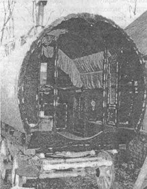 Другое современное дополнение к моторизованному дому – палатка. И опять таки в этом отношении цыгане давно опередили нынешних туристов: в дополнение к домам на колёсах устанавливали шалаши бендеры. Цыгане срезали длинные, гибкие ветви, втыкали их в два ряда в землю, пропуская свободные концы через отверстия центрального деревянного бруса.