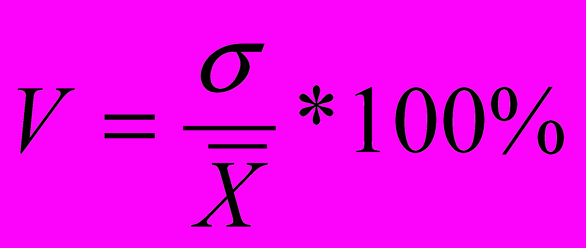 .Коефіцієнт варіації характеризує вплив випадкових факторів порівняно з основними умовами сукупності, які формують середню величину та становить відношення середнього квадратичного відхилення до середнього рівня варіюючої ознаки: