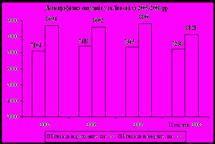 цінка поточної ситуації:Протягом 11 місяців 2008 року ситуація в місті характеризується від’ємним природним приростом та міграційним сальдо. Ситуація, що склалася з природним відтворенням та міграцією населення згубно впливає на вікову структуру, тобто поступово зростає частка осіб непрацездатного віку.