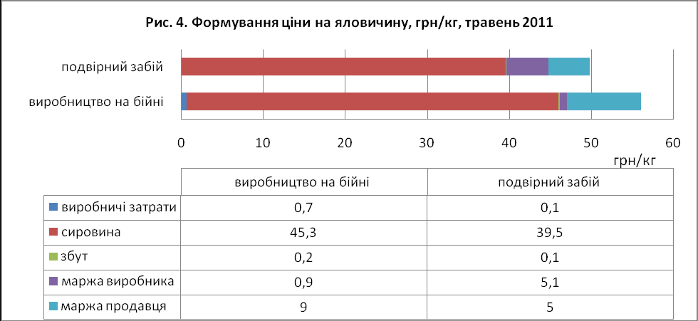 Разом з тим, у 2010 р. Верховна Рада України відтермінувала до 1 січня 2015 р. заборону на реалізацію на агропродовольчих ринках продукції домашнього виробництва та подвірного забою, але актуальність подвірного забою худоби підтверджує структура заробітку на 1 кг яловичини промислового та подвірного виробництва.