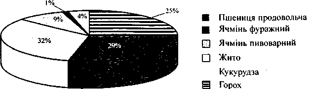 За обсягами реалізації на біржовому ринку на першому місці були пшениця продовольча, ячмінь фуражний (рис. 20). Це відповідало структурі виробництва зерна, що склалася на той час в Україні.
