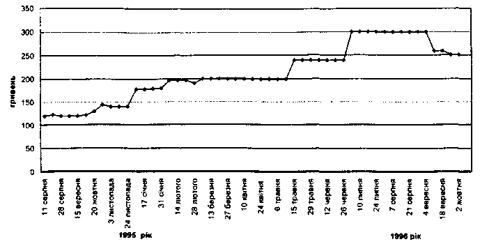 Так, середня ціна на ячмінь, що був експортований з України протягом чотирьох місяців 1996 p., становила $91 за тонну, а на біржовому ринку його продавали по $94, ціни на овес становили відповідно $72 і $75.