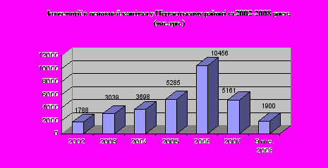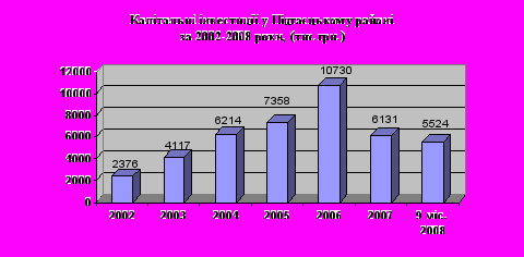 У січні-вересні 2008 року на розвиток економіки району спрямовано 5524 тис. грн. капітальних інвестицій (діаграма 5), що становить 0,3% загальнообласного обсягу.