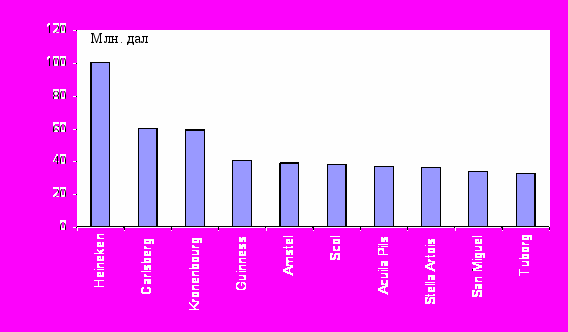 Ще одна компанія великої європейської "трійки" - Carlsberg - також представлена в десятці "брендів", що продаються в Європі, двома своїми марками – Carlsberg і Tuborg (Рис. 17).