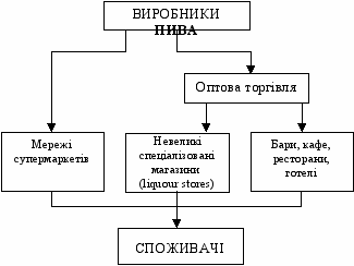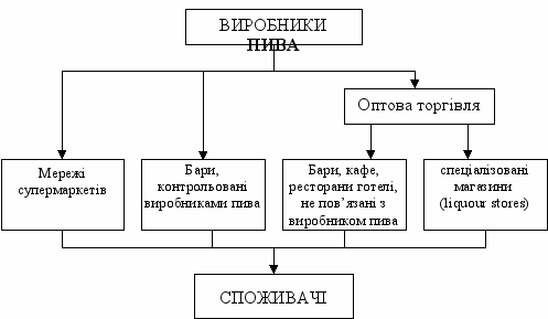 У зв'язку з відмінностями у структурі споживання між країнами різною є і структура каналів розподілу. На рис. 15 відображена схема дистрибуції, використовувана в більшості країн Європи, включаючи Францію, Голландію, Іспанію, Італію, Бельгію і Данію. Як було вказано вище, частка пива, що продається через кожен канал, не однакова.
