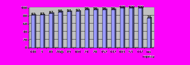 Успешность выполнения заданий повышенного уровня сложности определяется наличием устойчивых базовых знаний, готовностью и способностью применять их в нестандартной ситуации, сформированностью таких действий, как анализ, сравнение, обнаружение закономерностей, классификация, планирование решения. Практически все выпускники приступили к выполнению заданий повышенной сложности и только 30% школьников решили задачи без ошибок. Высокий процент выполнения отмечается в школах № 21, 30 ф., 70 ф., 112, 117, 137.