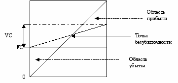 При анализе взаимосвязи затрат, объема продукции и прибыли вычисляют точку преломления убытков и прибыли, или порог рентабельности. Эта точка характеризует ситуацию, когда уже нет убытков, но еще нет прибыли (равна 0). Это то же самое, что точка безубыточности или критическая точка.