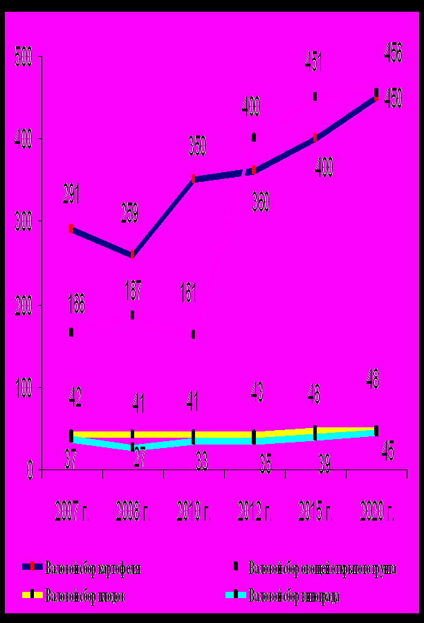 | Валовой сбор картофеля | тыс.тонн | 291 | 259 | 89 | 350 | 120 | 360 | 124 | 103 | 400 | 137 | 111 | 450 | 155 | 113 |