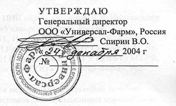 от 20. 01 2005г. ООО «УНИВЕРСАЛ-ФАРМ»