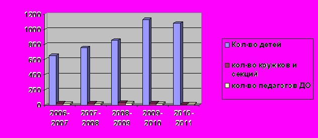 Вывод: Показатели результативности участия творческих объединений блока ДО и учащихся ЦО в творческих конкурсах и фестивалях различного уровня достаточно высоки. Сокращение количества кружков в текущем учебном году не привело к сокращению охвата учащихся дополнительным образованием и кружковой работой, что свидетельствует об улучшении качества дополнительного образования.