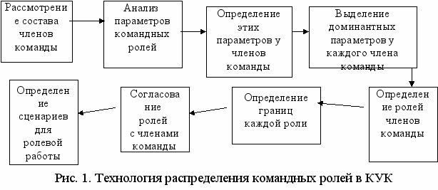 Когда ведется работа с другими людьми в составе одной группы или команды, каждый член КУК при взаимодействии с другими ее членами выполняет роли двух типов. Первая и наиболее очевидная из них является функциональной ролью, базирующейся на профессиональных навыках и практическом опыте, которые мы вносим в реализацию проекта или решения проблемы. Вторая роль, нередко упускаемая из виду, является командной ролью, в основе которой лежат наши личностные данные. В значительной степени командную роль можно рассматривать как категорию, определяющую то, как применяются навыки и опыт, составляющие само содержание выполняемой функциональной роли. Технология выявления ролевых возможностей в КУК представлена на рис. 1.