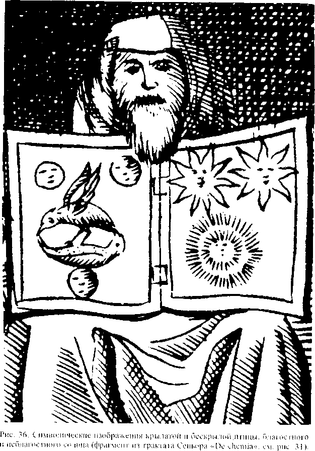 Рис. 36 Символическое изображение крылатой и бескрылой птицы, благостного и неблагостного солнца.