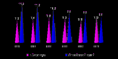 Рис. 1 Демографические показатели по г. Барнаулу за 1994-2010 гг. (на 1000 населения)